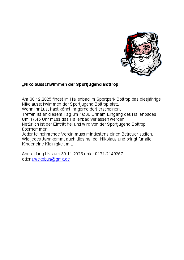 Nikolausschwimmen am 08.12. im Hallenbad im Sportpark